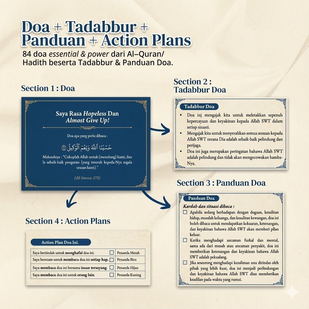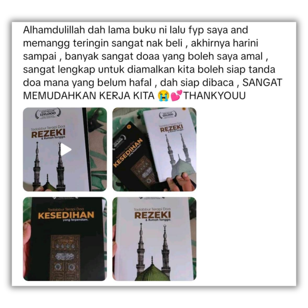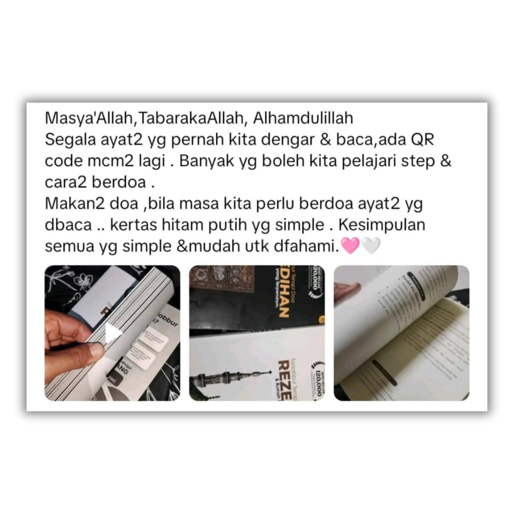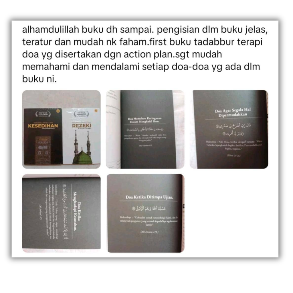 Buku ni bukan sekadar buku, tetapi teman bicara di saat sunyi. Gabungan Tadabbur Al-Quran dan doa-doa khusus untuk merawat luka lama dan membuka pintu kejayaan luar biasa